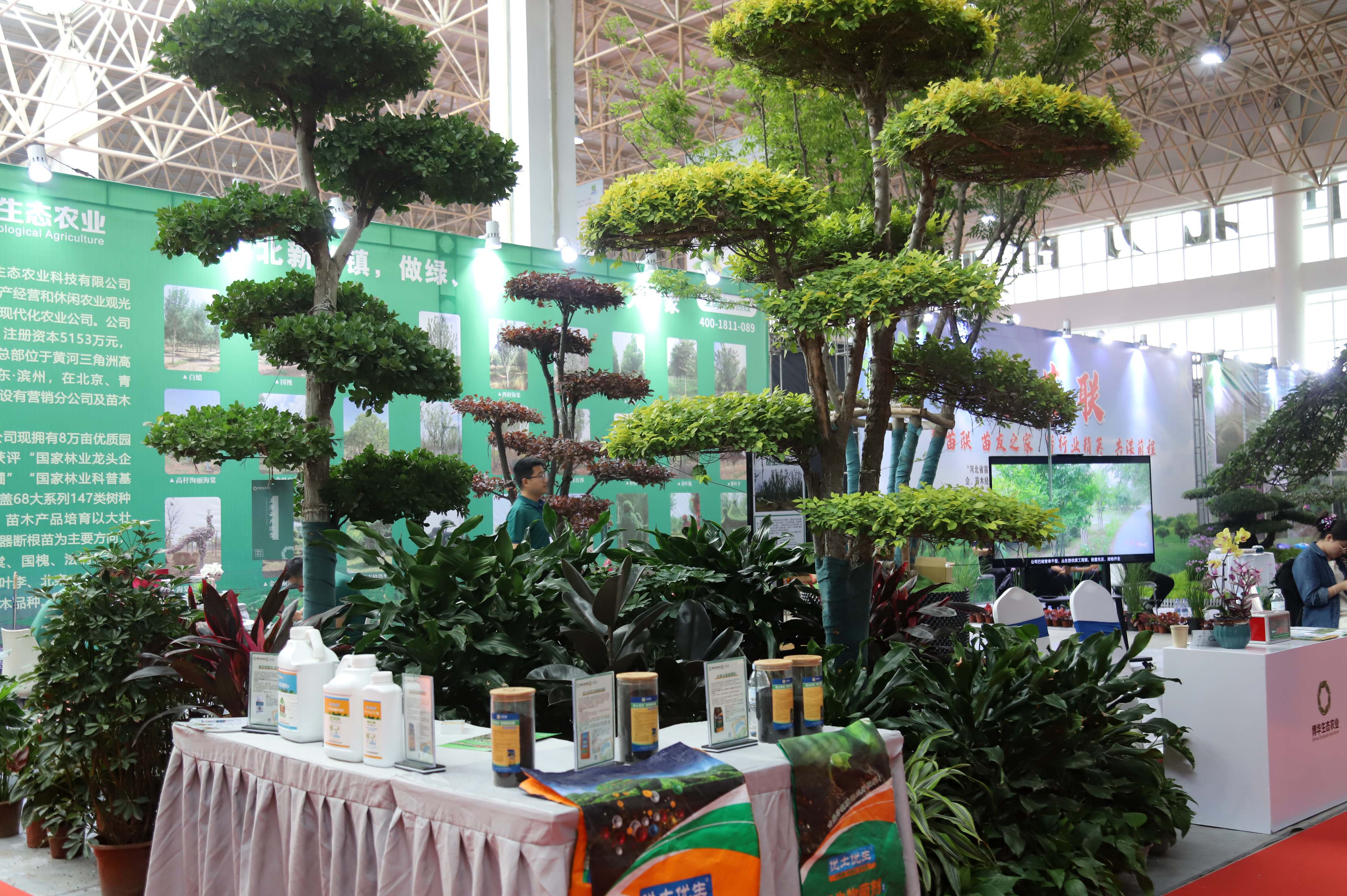 開(kāi)展期間,博華生態(tài)農(nóng)業(yè)展出的叢生樸樹(shù)、多類(lèi)樹(shù)種云片造型、蝴蝶蘭、生物菌肥菌劑等產(chǎn)品受到廣泛關(guān)注。
