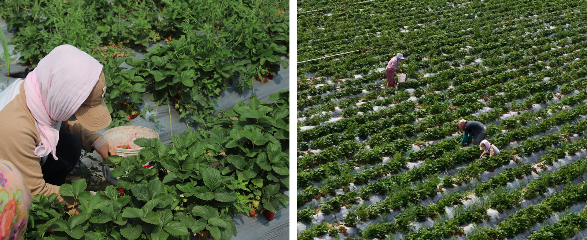 50余畝的草莓種植區(qū),彌漫著清甜的果香。博華種植基地采用水肥一體化滴灌技術,以農家有機肥作底肥,鋪膜防草,整個草莓生長過程不打催熟劑自然成熟,實現(xiàn)生態(tài)種植。一壟壟油綠秧苗生機勃勃,一畦畦草莓長勢喜人,今年試種的草莓品種是CF1,采摘期可從5月持續(xù)至6月,將主要用于果粉、凍干等產品的深加工。